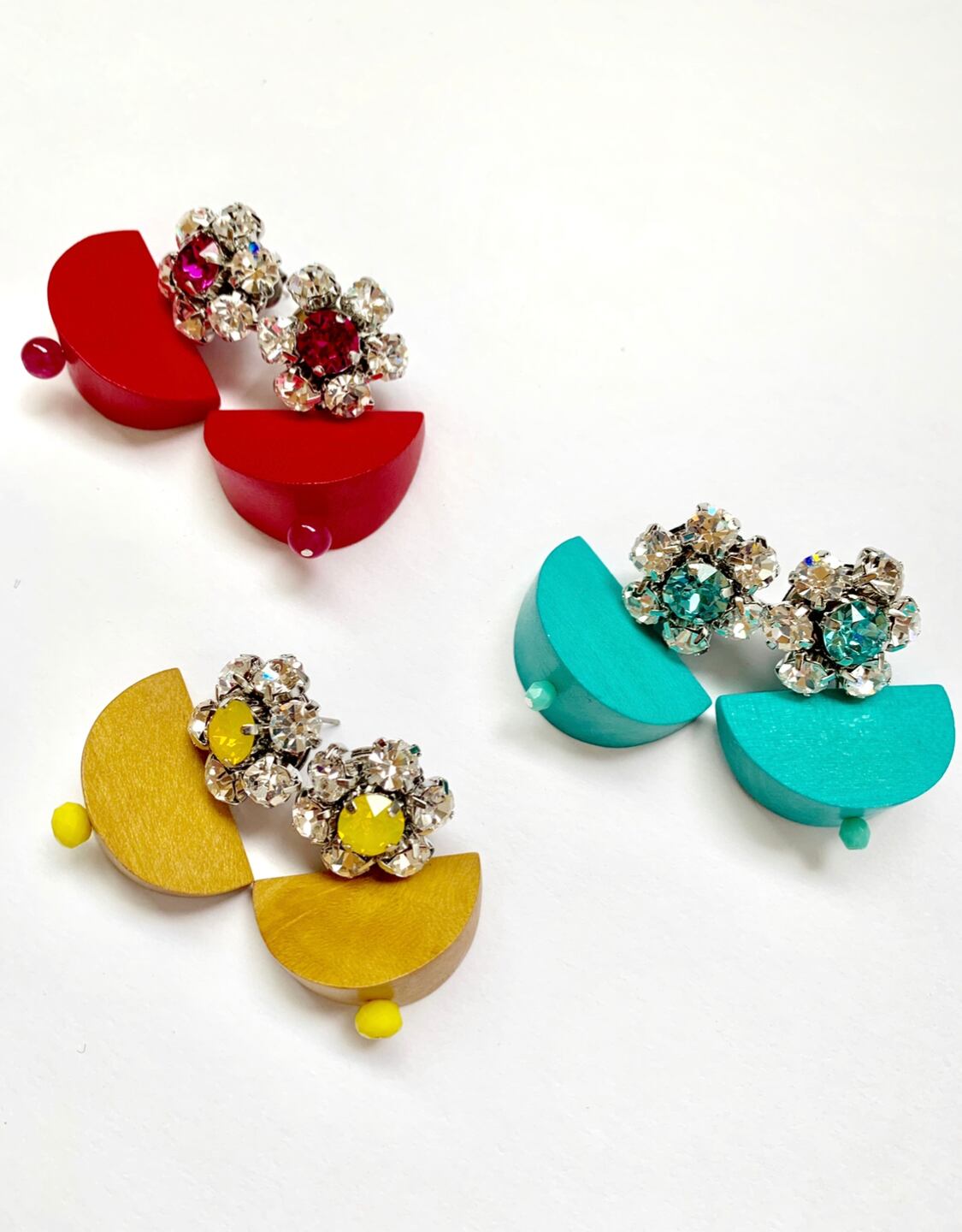 キラキラフラワーに、色鮮やかなウッドパーツの