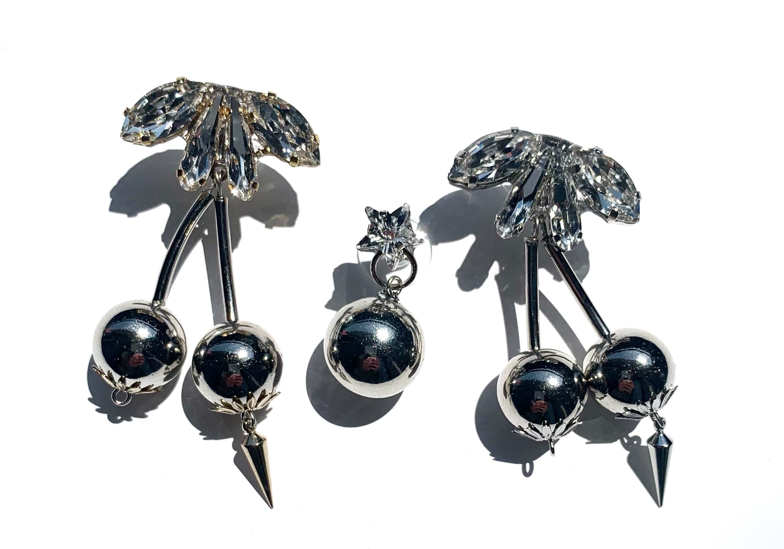 単色でスワロフスキーとメタルカラーのチェリーが今までとはまた違うキラリとクールなデザインに仕上げました♡キラリと放つスワロフスキーの輝きがさらに耳元で存在感◎