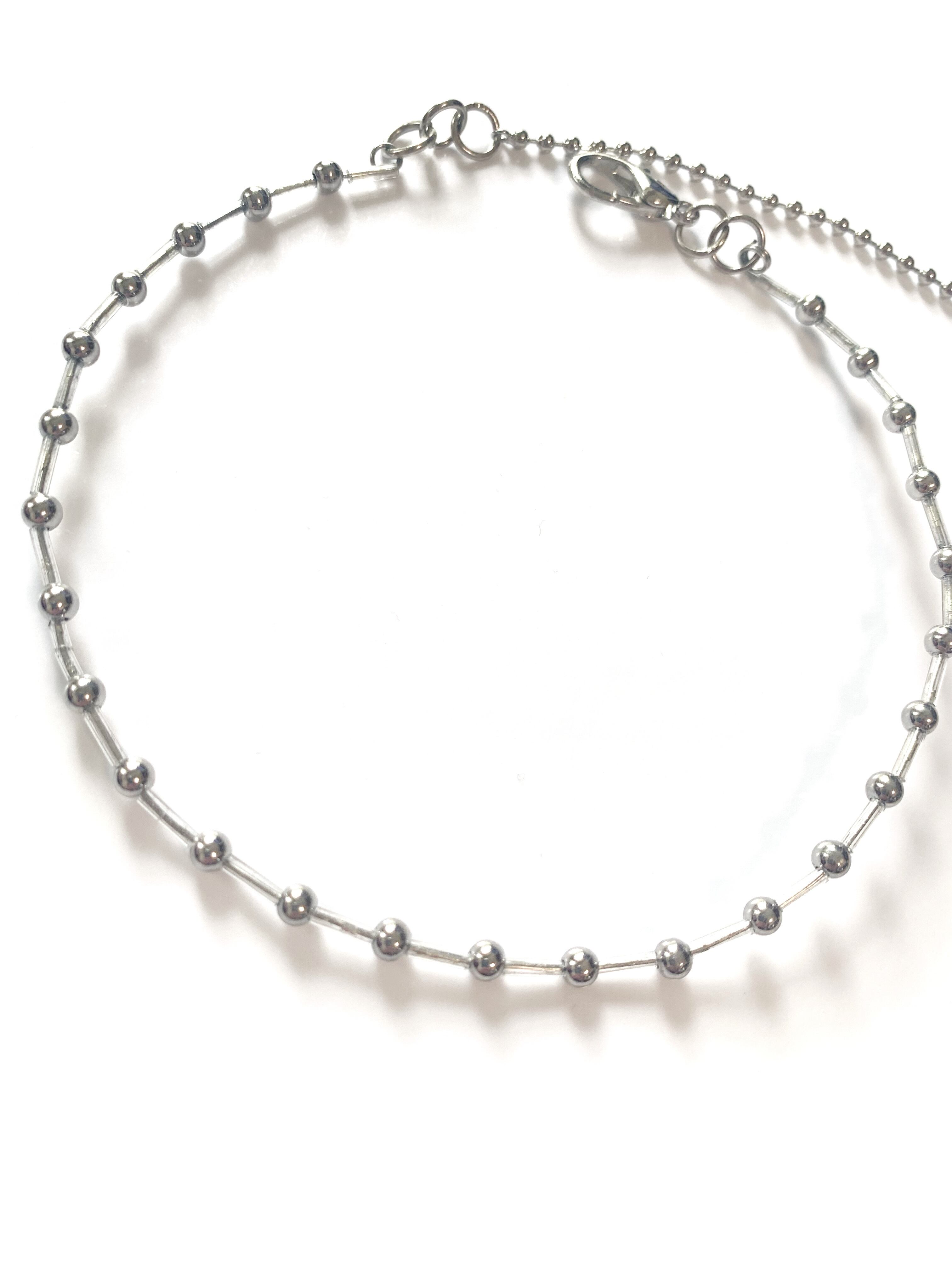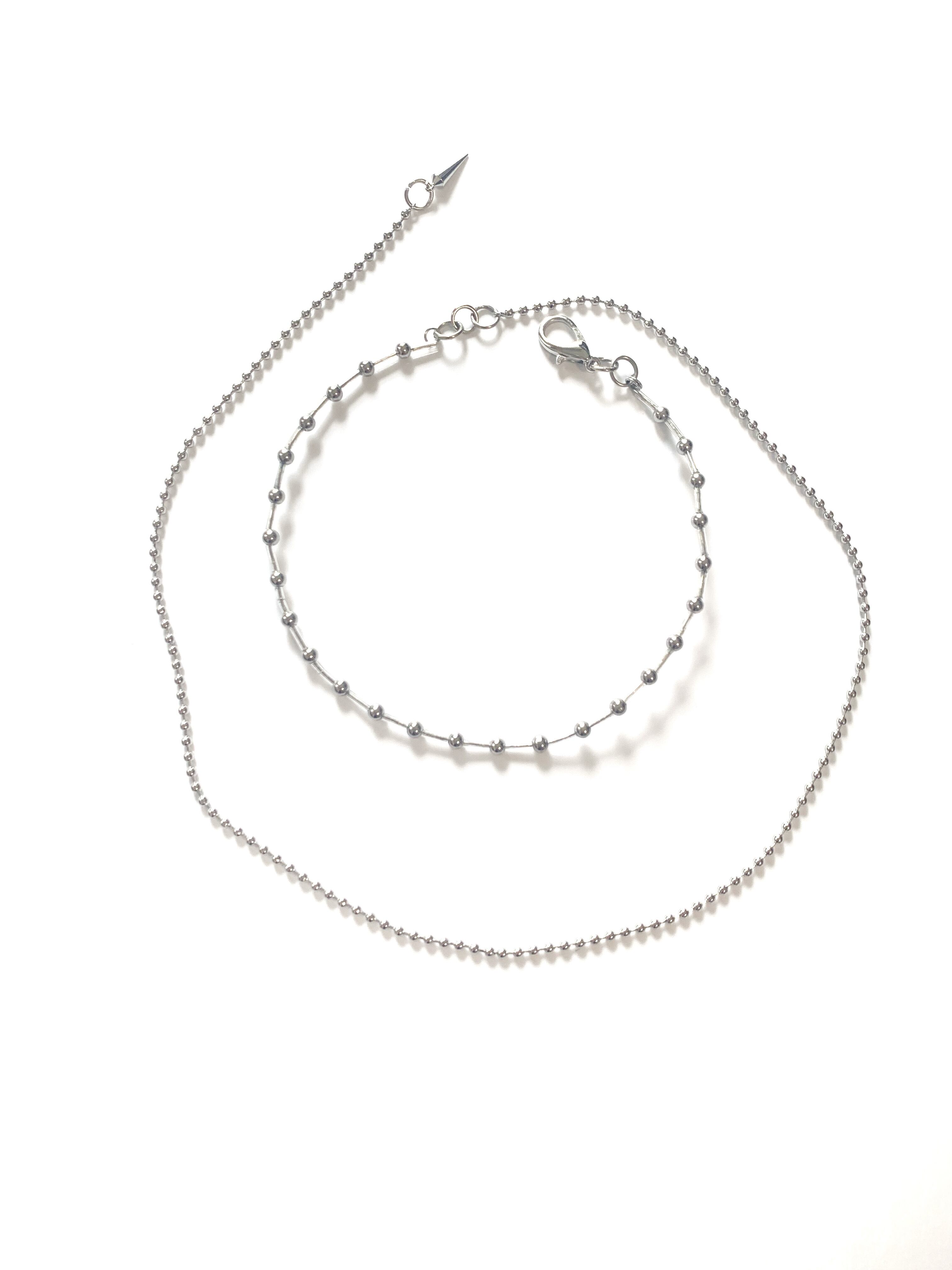小さなメタルボールを散らしたシンプルなネックレスです。