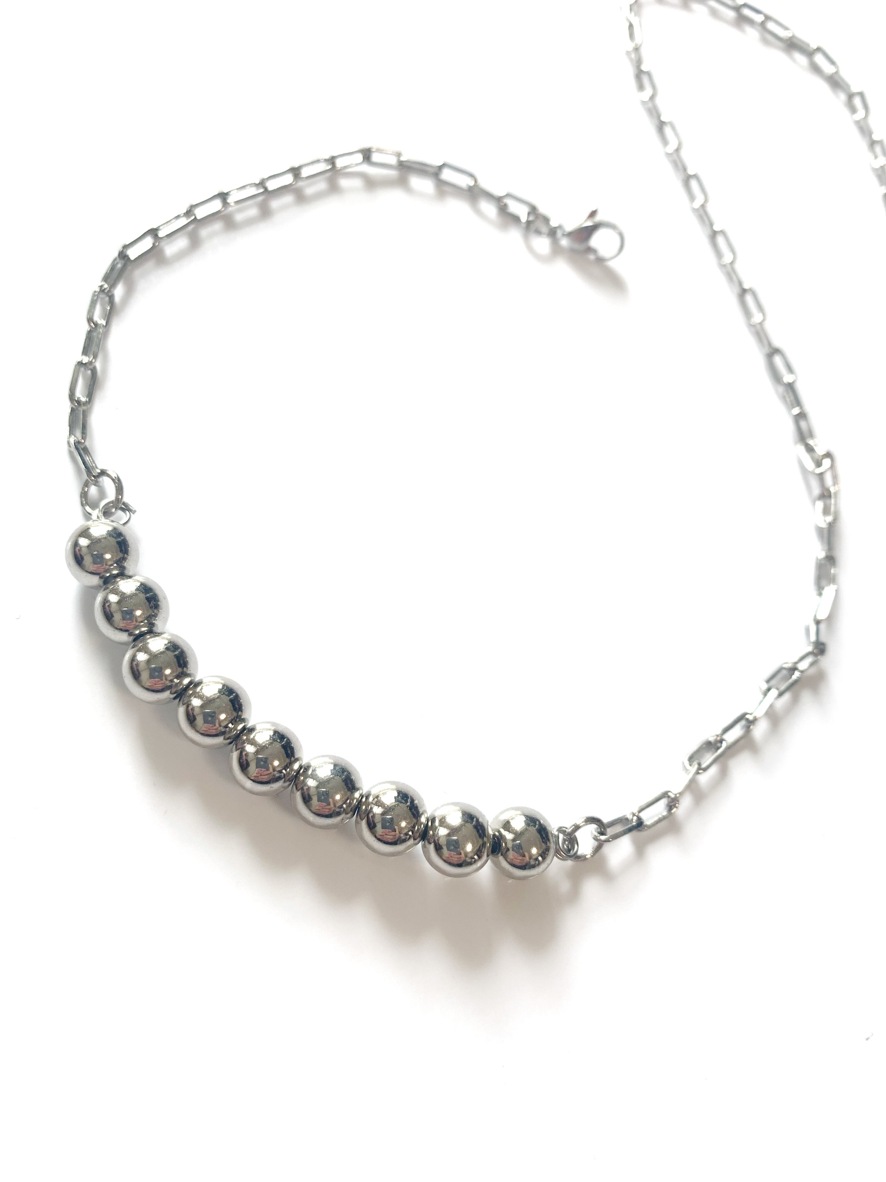 9粒の綺麗な球体が視線を引き付けるチェーンネックレス。