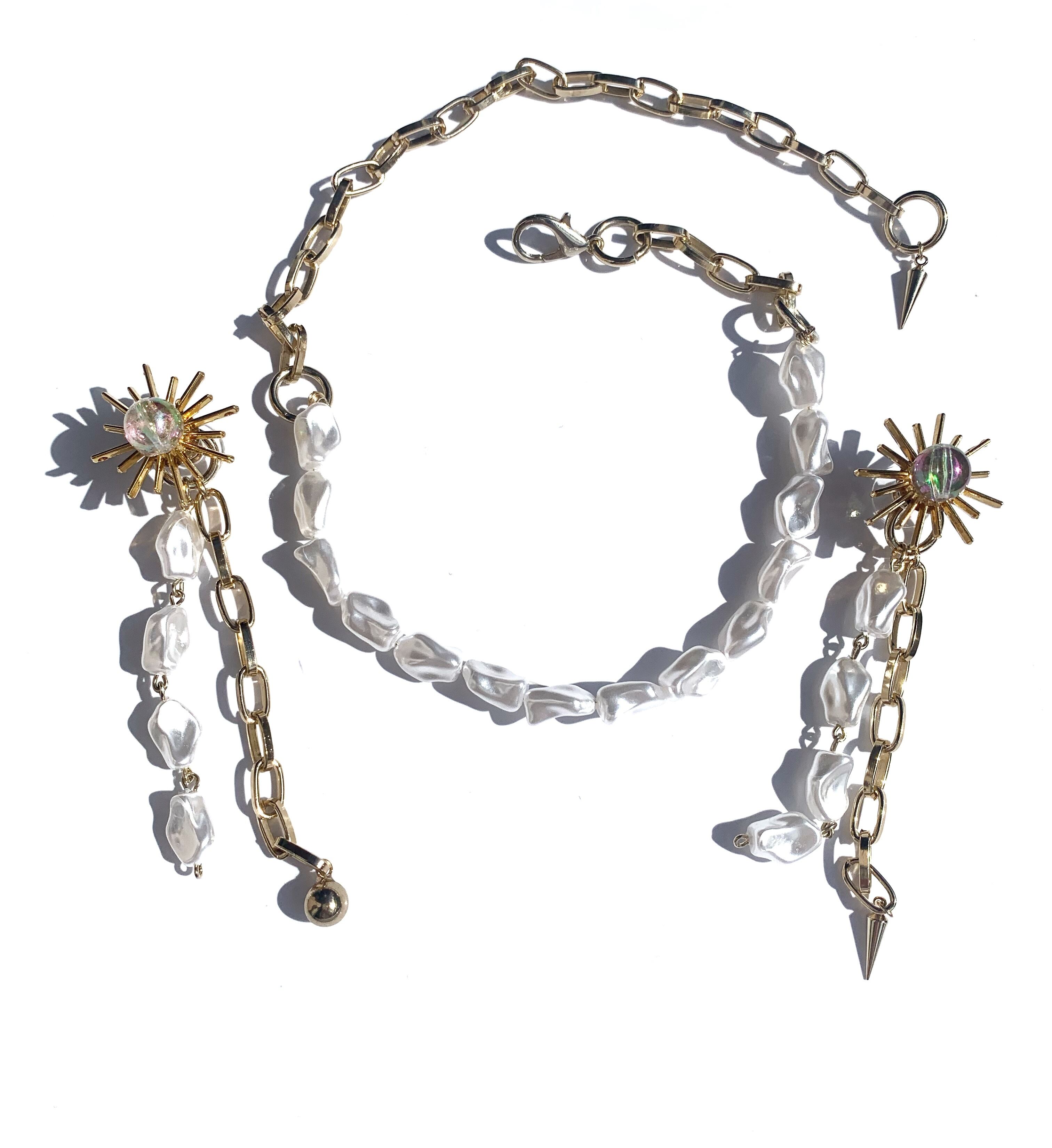 1粒ごとに異なるイルミネーションパールが個性的。 クラッシーなスタイリングはもちろん、デイリーユースなTシャツやスエットにもぴったり。