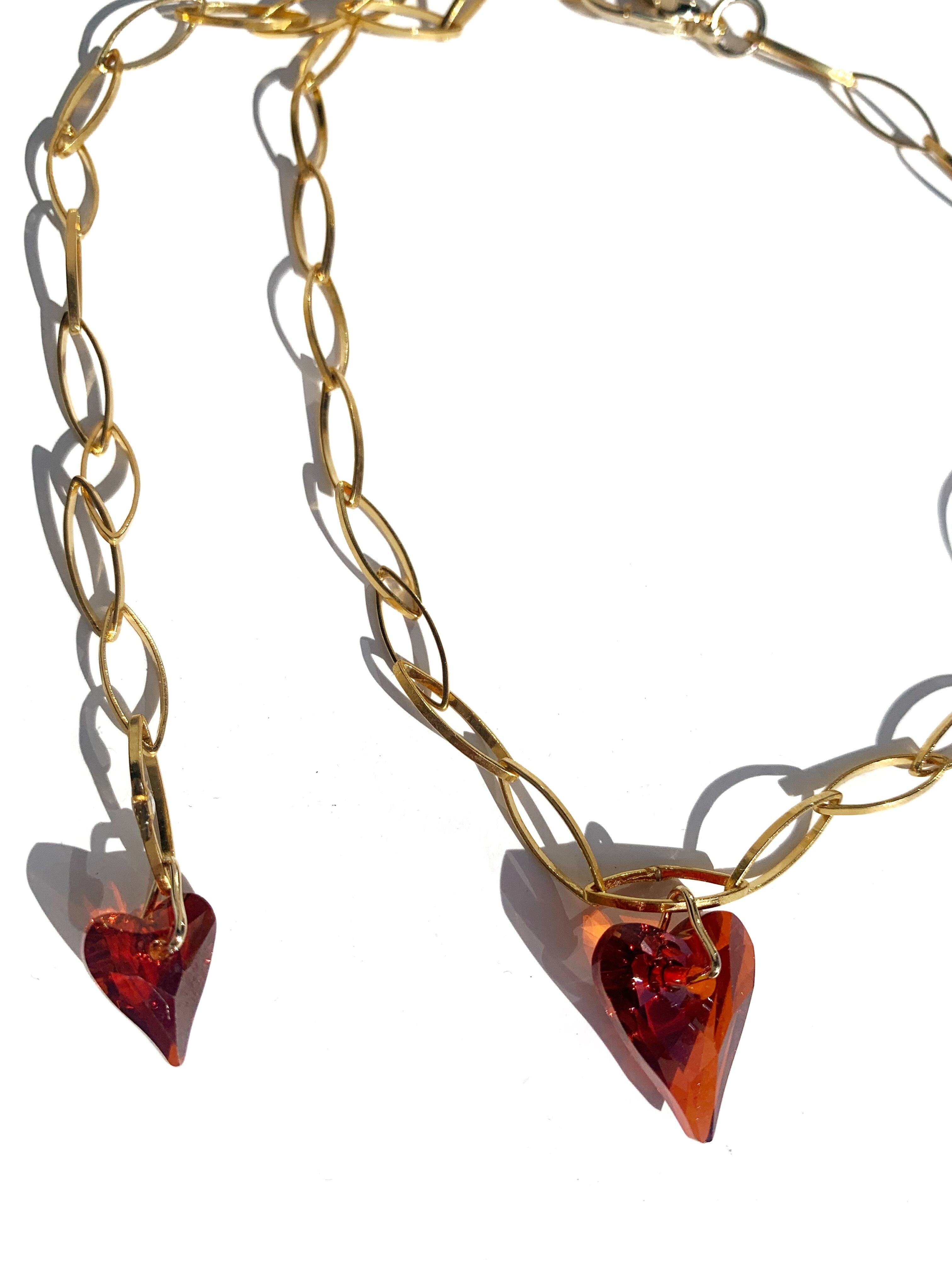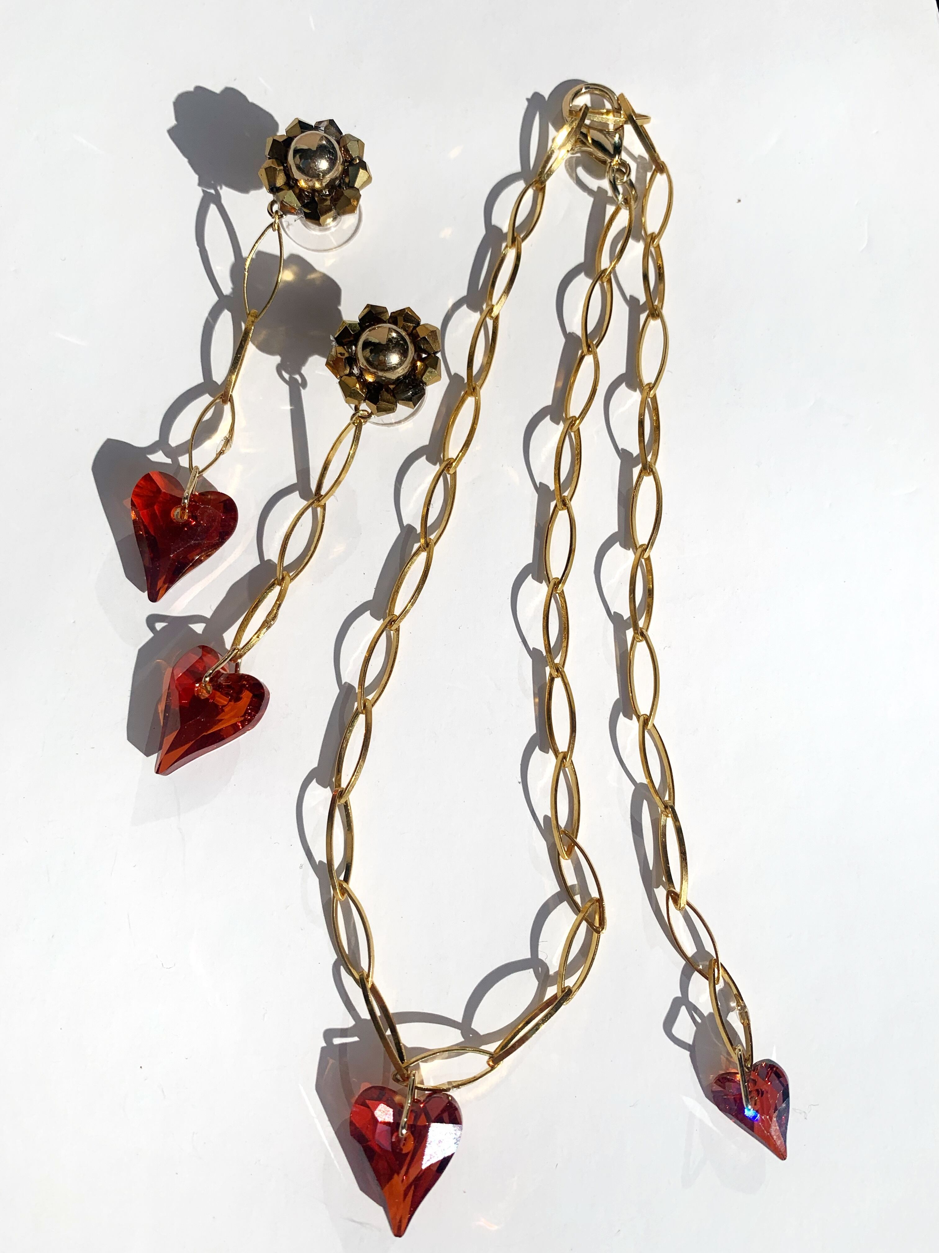 真っ赤な2つの大小スワロフスキーのハートが心惹かれる♡