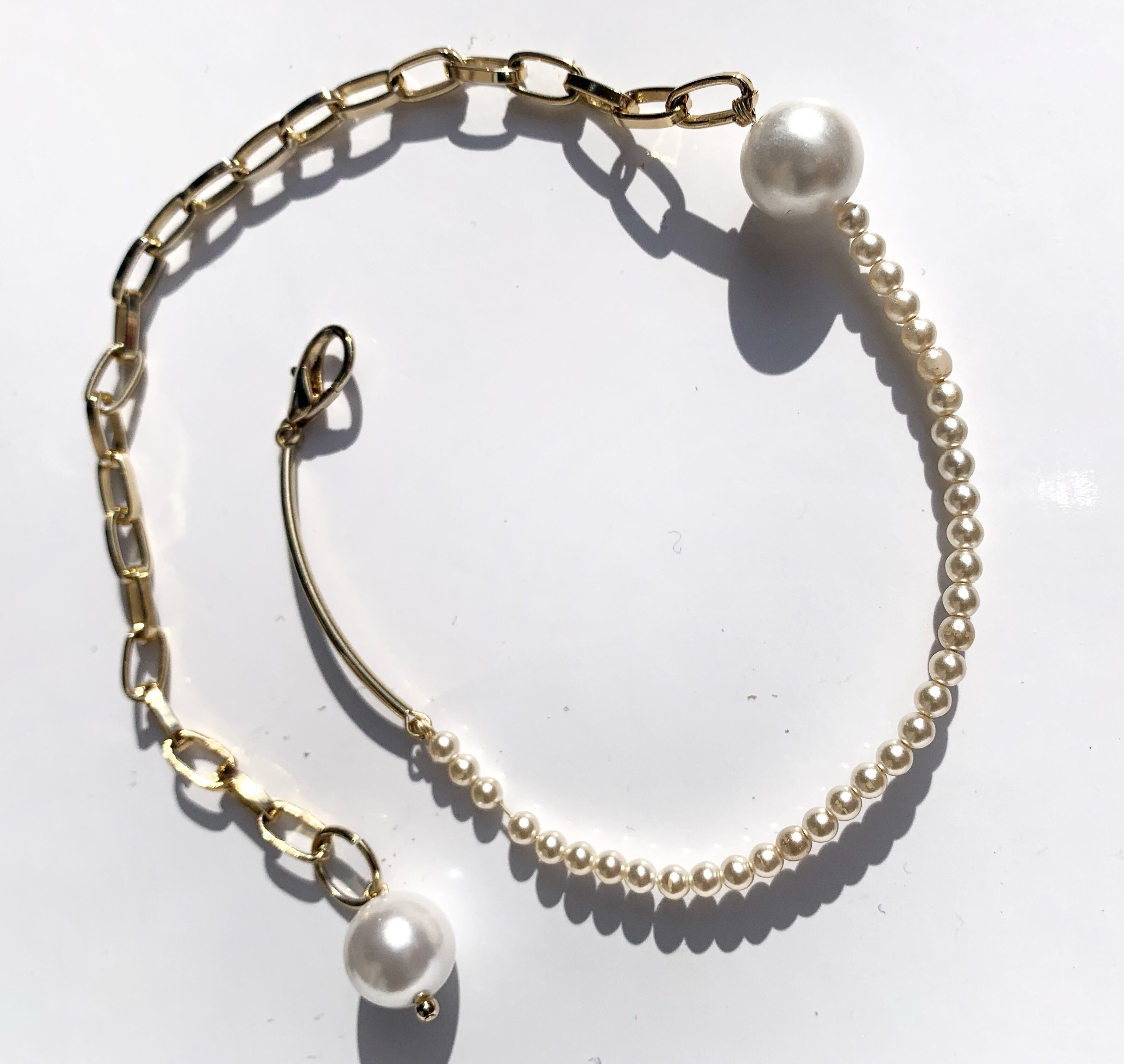 小さなパールとゴールドのメタルチェーンが連ねたチョーカー。