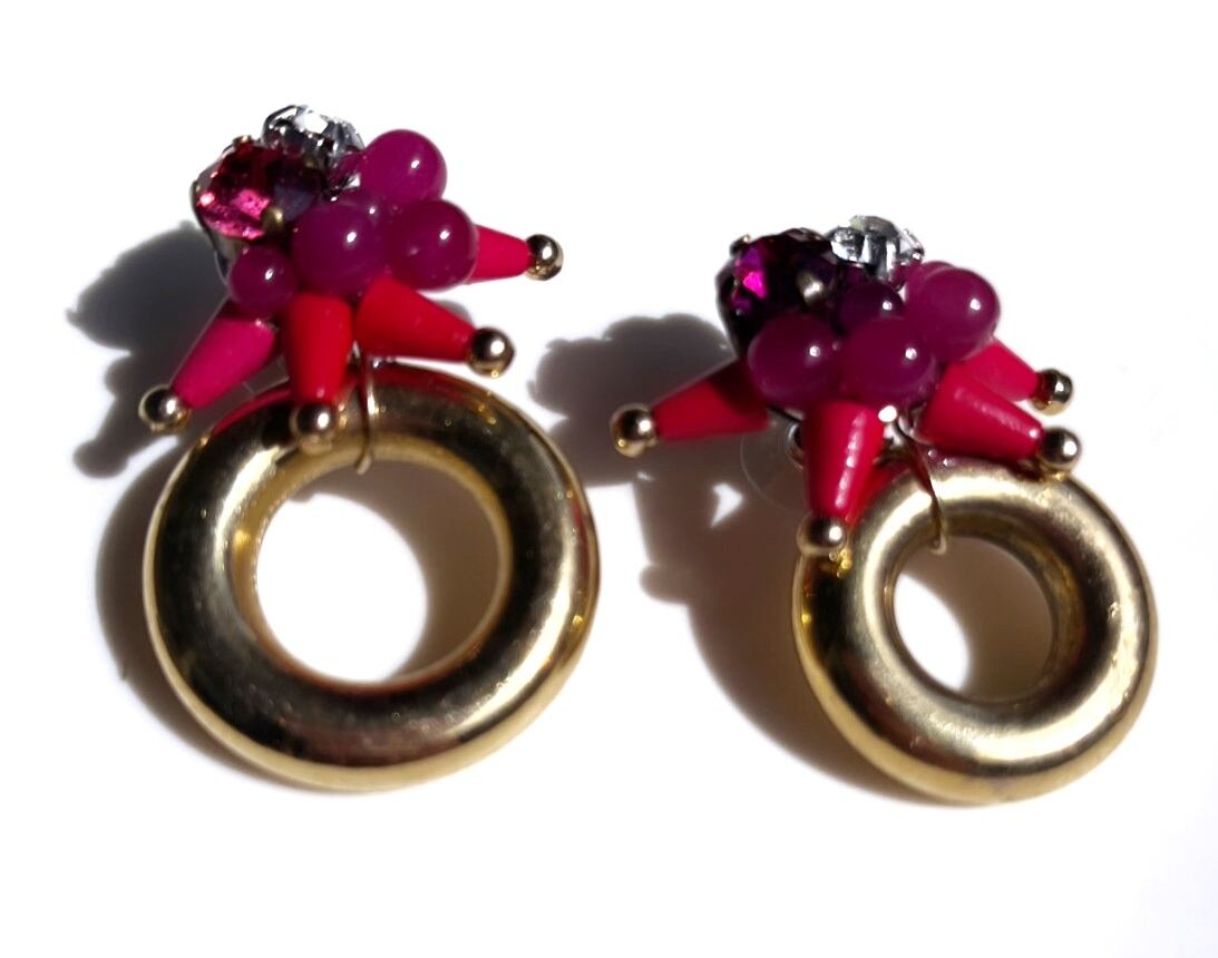 ゴールドのフープが上品さを演出し、ピンクカラーのビジュが女性らしさを引き立てます♡